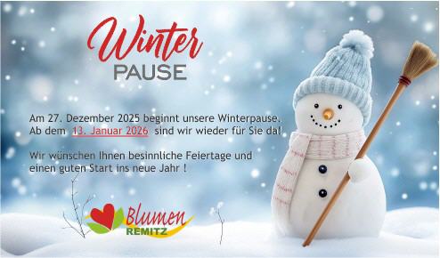 am Mittwoch, den 24.12. haben wir von 09:00 - 13:00 Uhr geöffnet
